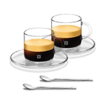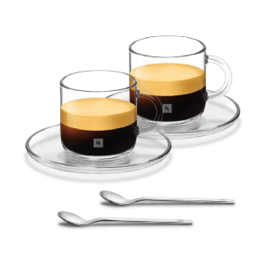 Disfrute en grande, incluso de los pequeños momentos de café con el set Vertuo Lungo. Viene de dos en dos, con dos tazas Lungo (aprox. 110 ml), dos cucharas y dos platillos. Fabricadas en vidrio templado y con formas redondeadas, las tazas mantendrán tu lungo caliente y se asentarán cómodamente en tu mano. El vidrio templado se procesa con tratamientos especiales para aumentar su fuerza y resistencia a los choques térmicos en comparación con el vidrio normal. Como con toda la cristalería, manipúlelas con cuidado. Para un momento de café italiano, todos los días.
