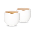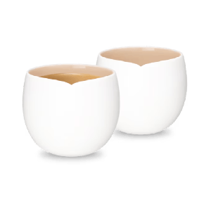 Este juego de dos tazas grandes (aprox. 270 ml) convierte cada momento de café en un pequeño ritual. Cada taza está hecha de porcelana de doble pared. Diseñado por India Mahdavi, su forma está inspirada en el grano de café, con un exterior blanco mate y un interior de color barnizado. Para los momentos de café que le transportan al pasado.