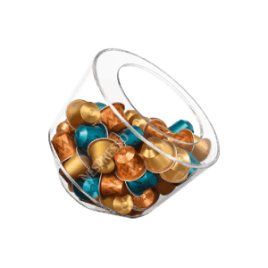 Dispensadorde cápsulas transparente de Plexiglas® con forma de cubo. Un accesorio de café esencial y una solución elegante para almacenar tus Cápsulas Nespresso. Su forma de cubo y su estructura transparente de Plexiglas® añade un nivel adicional de sofisticación a cualquier cocina. Capacidad: 50 cápsulas Original Capacidad con cápsulas Vertuo varía dependiendo del tamaño (se suministra vacío). Dimensiones: 12,8 x 12,8 x 12,5 cm